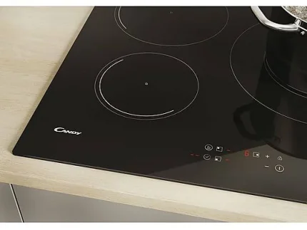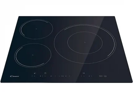 La Placa de Inducción Candy CI633C cuenta con 3 zonas de cocción y una estructura de vidrio cerámico. El dispositivo
