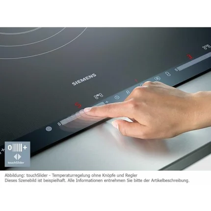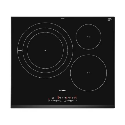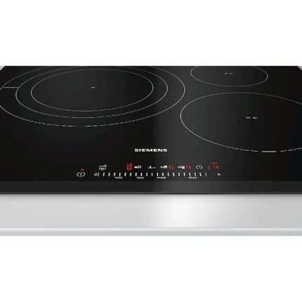 La Placa de Inducción Siemens EX275FXB1E presenta una superficie de vitrocerámica con tecnología de inducción. Posee cuatro zonas de cocción