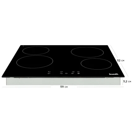 La Placa Vitrocerámica KUNFT KVH3935 cuenta con una superficie de vitrocerámica de 59 cm de ancho. Dispone de cuatro zonas