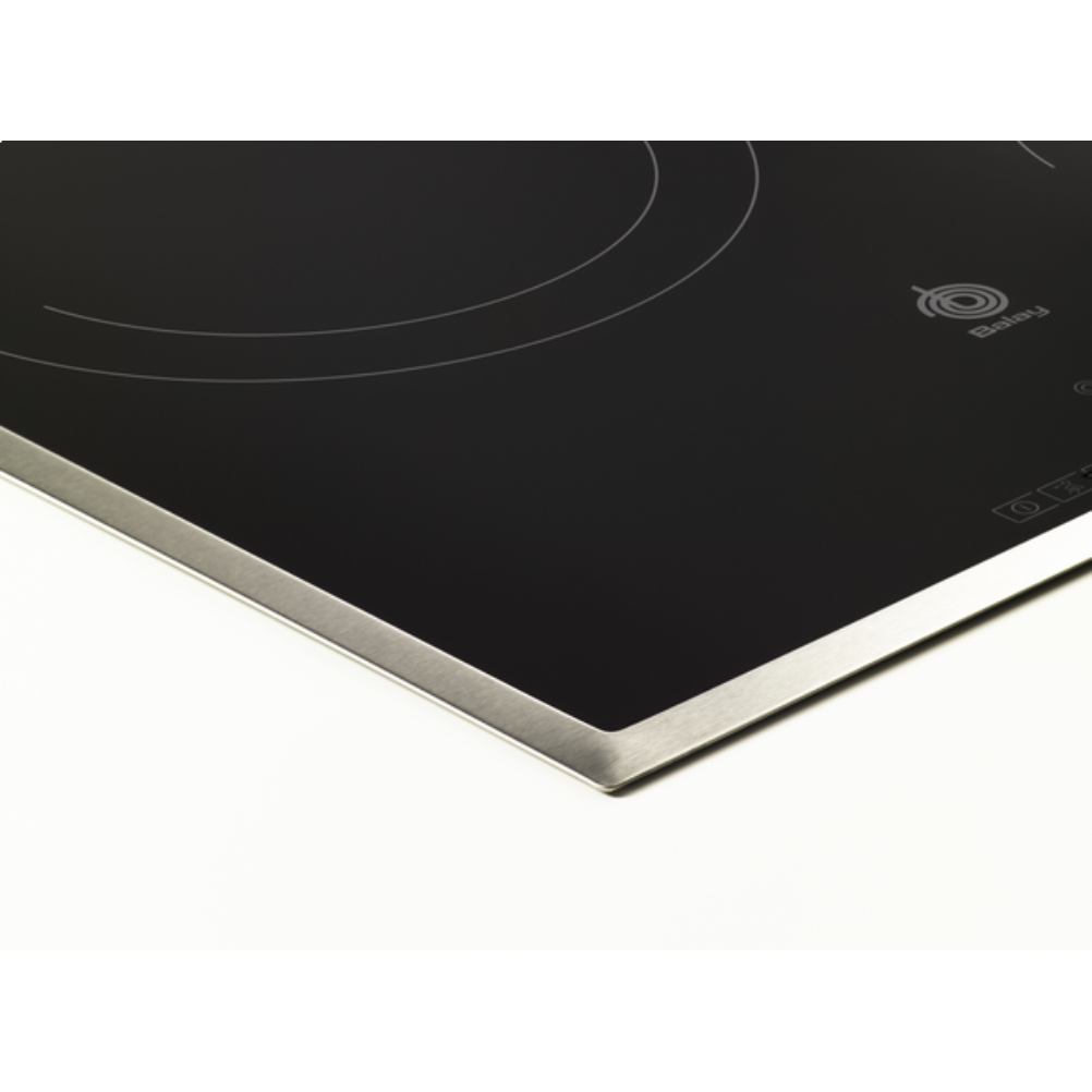 Placa Vitrocerámica Balay 3EB720XR con tres zonas de cocción y control táctil. Tiene una potencia total de 7200 W distribuidos en las diferentes áreas de cocción. La superficie de vitrocerámica permite una rápida respuesta al cambio de temperatura, facilitando el proceso de cocinado. Cuenta con un temporizador para programar los tiempos de cocción de manera precisa. Incorpora funciones de bloqueo de seguridad y un indicador de calor residual que muestra la temperatura de las zonas de cocción después de usarla. Es compatible con utensilios de cocina de diferentes materiales, incluyendo acero inoxidable, aluminio y hierro fundido, siempre que sean planos y lisos. Su diseño permite una fácil limpieza gracias al material no poroso de la superficie. Requiere conexión eléctrica para su funcionamiento y debe instalarse de acuerdo con las normativas locales. La instalación debe ser realizada por un profesional cualificado. Este modelo está diseñado para encajar en mobiliario de cocina estándar. La placa incluye un manual de usuario con instrucciones detalladas sobre su uso y mantenimiento.