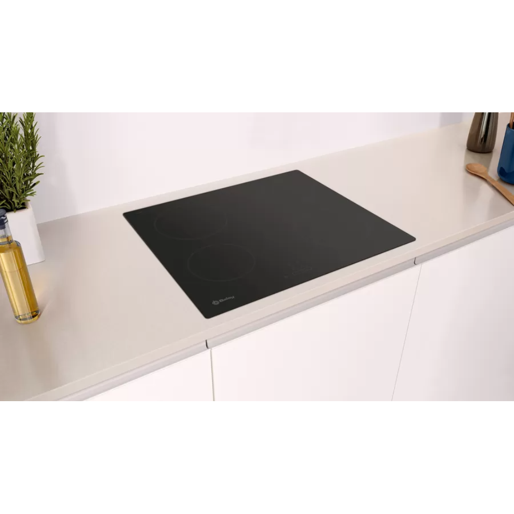 La Placa Vitrocerámica Balay 3EB761EN cuenta con tres zonas de cocción y un sistema de control táctil. Esta placa tiene una potencia total de 5.400 W y una potencia de cada zona que varía. Está equipada con un temporizador para cada zona de cocción y funciones como el mantenimiento caliente. Tiene un marco de cristal vitrocerámico que facilita la limpieza. La placa es compatible con utensilios de cocina de fondo plano. Su instalación es de encastre en una superficie de trabajo. La Placa Vitrocerámica Balay 3EB761EN es apta para usar en diferentes tipos de cocinas, gracias a su diseño. Es posible utilizarla con ollas y sartenes de diferentes tamaños, siempre que cumplan con los requisitos de la zona de cocción. Además, cuenta con un indicador de calor residual que avisa si la superficie está caliente después de su uso. Este producto se presenta como una solución para la cocción en cocinas que requieran este tipo de tecnología. La voltaje de operación es de 230 V y tiene un sistema de seguridad que desactiva la placa en caso de sobrecalentamiento. Las instrucciones de uso vienen incluidas en el paquete, proporcionando información sobre su funcionamiento y mantenimiento.