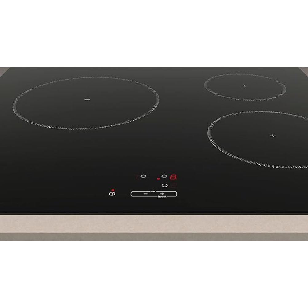 La Placa de Inducción Balay 3EB864EN cuenta con tres zonas de cocción, diseñada para un funcionamiento a través de inducción electromagnética. Su potencia total es de 4600 W, permitiendo una distribución uniforme del calor en las ollas y sartenes compatibles con este tipo de tecnología. Este modelo está equipado con un sistema de control táctil que facilita la selección de la potencia deseada y la programación de temporizadores. La superficie de la placa está fabricada en vitrocerámica, destinada a facilitar la limpieza, dado que los derrames no se adhieren a su superficie cuando la placa está apagada. Esta placa incluye un sistema de seguridad que apaga automáticamente el dispositivo en caso de que la placa se sobrecaliente. Además, está equipada con un indicador de calor residual, que informa si alguna zona permanece caliente después de ser apagada. La instalación de la Placa de Inducción Balay 3EB864EN debe realizarse en una superficie adecuada, respetando las normativas de instalación eléctricas vigentes. El dispositivo es compatible con utensilios que posean un fondo magnético, lo que permite su correcta utilización.