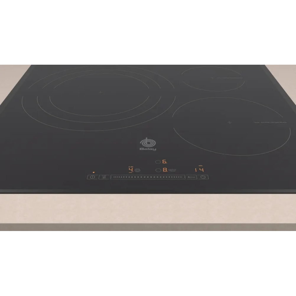La Placa de Inducción Balay 3EB967LU presenta una superficie de inducción que permite calentar utensilios de cocina compatibles de manera eficiente. Cuenta con tres zonas de cocción, dos de las cuales son flexibles, lo que permite adaptar la superficie de cocción según el tamaño de las ollas y sartenes usadas. Este modelo tiene 17 niveles de potencia que se pueden ajustar fácilmente mediante controles táctiles. Además, incluye un temporizador independiente para cada zona, que permite programar el tiempo de cocción deseado. La función de aumento de potencia permite alcanzar temperaturas más altas durante un período limitado, facilitando procesos como el calentamiento rápido. Dispone de un sistema de detección de recipientes, que activa el calor solo cuando un utensilio apropiado se coloca sobre la zona. La instalación de este producto es empotrada, ocupando espacio en la encimera de forma eficiente. La Placa de Inducción Balay 3EB967LU es compatible con sistemas eléctricos estándar y está diseñada para ser conectada a una fuente de alimentación adecuada. La limpieza de la superficie se realiza de manera sencilla, ya que las manchas y residuos de alimentos no se adhieren de forma duradera. Este modelo también incorpora un indicador de calor residual que informa sobre la temperatura de las zonas de cocción, mejorando la seguridad durante su uso.